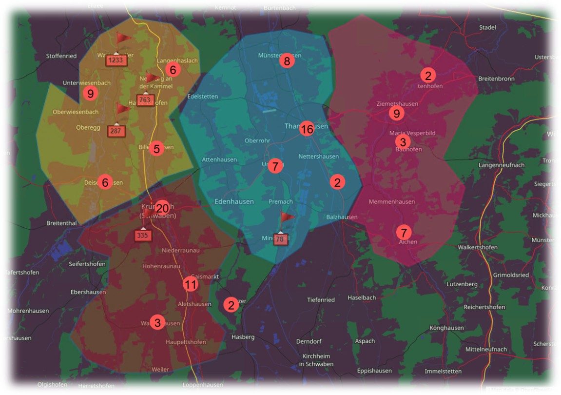 - zoomabhängige GEO-Übersicht von Einsatzstellen